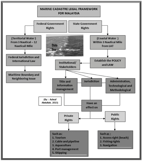 A visual representation of Malaysia's legal framework for marine area and resource management.